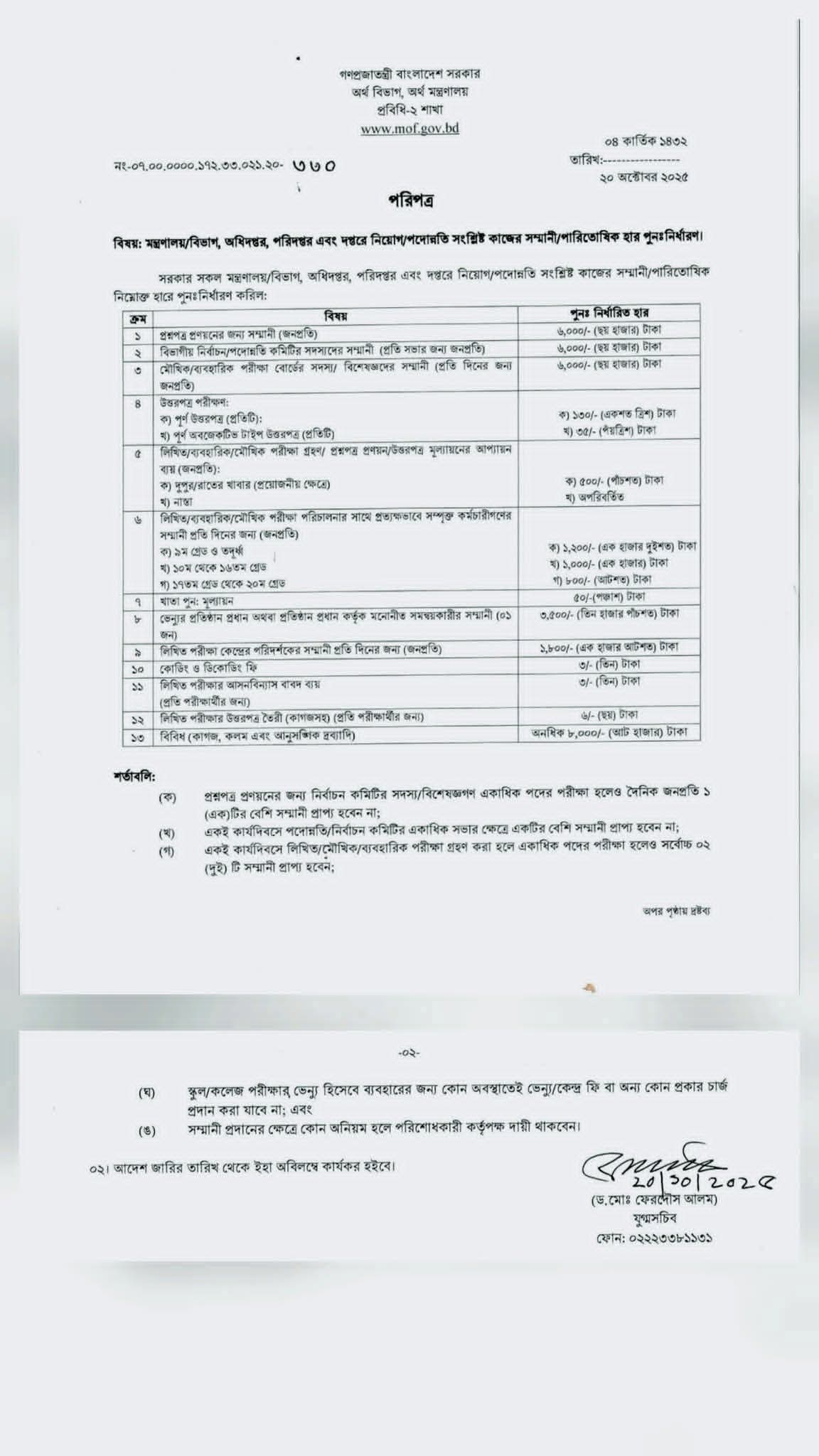 | ১৮৩ | মন্ত্রণালয়/বিভাগ, অধিদপ্তর, পরিদপ্তর এবং দপ্তরে নিয়োগ/পদোন্নতি সংশ্লিষ্ট কাজের সম্মানী/পারিতোষিক হার পুন:নির্ধারণ | ৩৩০ | ২০.১০.২০২৫ |