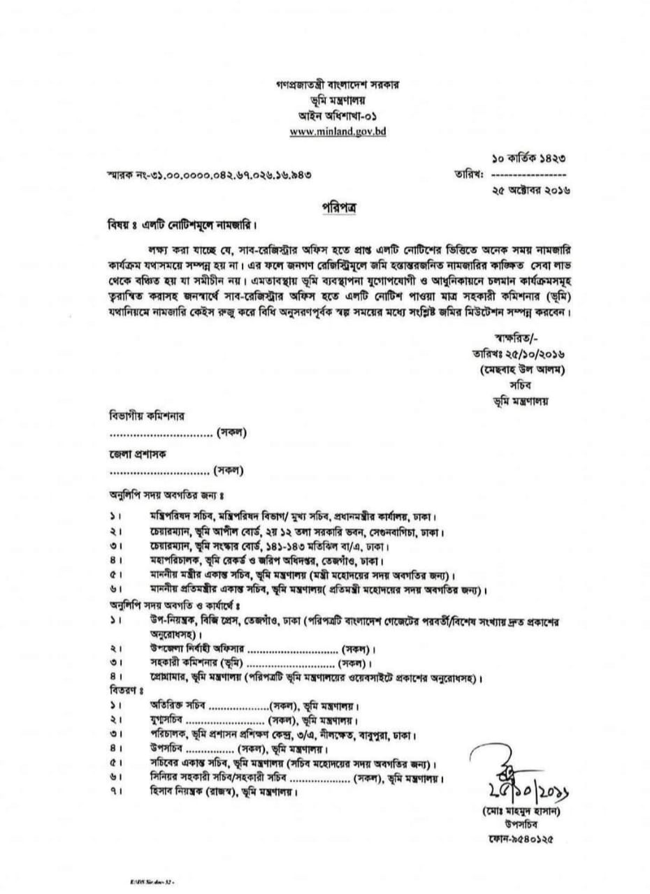 | ১৮৪ | এলটি নোটিশমূলে নামজারি | ৯৪৩ | ২৫.১০.২০১৬ |